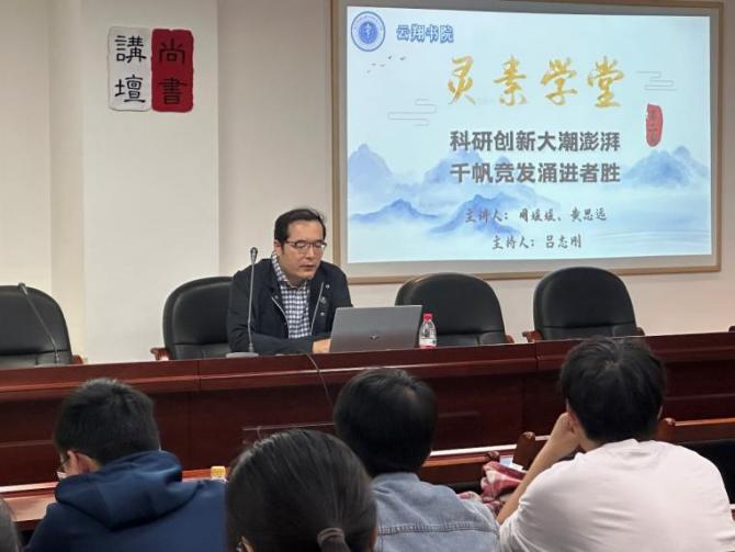 4月22日下午,云翔书院“灵素学堂”第二期“科研创新大潮澎湃,千帆竞发涌进者胜”开讲。主讲人SUNBET申博博士研究生周媛媛、2022级中西医结合临床专业本科生黄思远以及公司百名学子共同参加此次学术分享活动。活动由SUNBET申博副经理吕志刚主持。