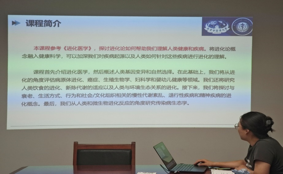 最后,林滢老师就即将申请的新开选修课《进化与疾病》进行介绍,她从课程设置、教材选用情况、课程开设意义、课程教学大纲、教学目标、教学内容及课时分配、考核方式等展开介绍,同时还展示了可供参考学习的电子资源。与会教师普遍认为该课程的选择较有意义,建议进一步优化,提升拟开课程与公司已有课程的区分度。