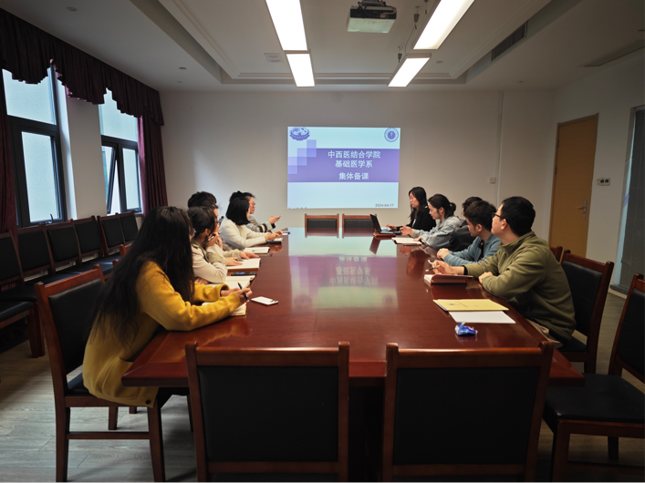 2024417日,依托于公司灵素工作坊,中西医结合基础教研室和循证与转化医学教研室全体教师,在丰盛楼102会议室举行集体备课活动,备课的主题为探讨《中西临专业导论》课程的教学设计及课程思政建设思路。活动由中西医结合基础教研室副主任成小兰主持。