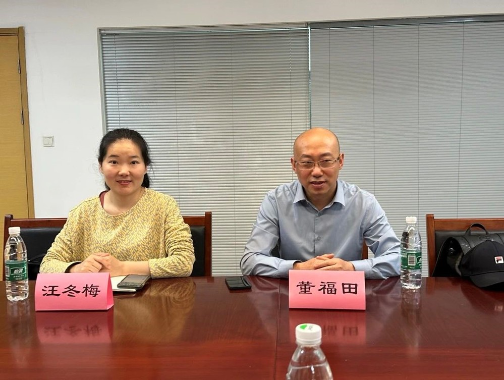 蒋燕代表公司对董福田一行表示欢迎,并从公司历史、团队队伍、学科发展、专业建设等方面简要介绍了公司情况,并详细介绍了员工培养工作和毕业生就业情况等。董福田介绍南师大国家健康医疗大数据研究院的研发和进展,以及人员招聘情况,并与公司教师就中西医结合科研和临床等方向进行深入交流。