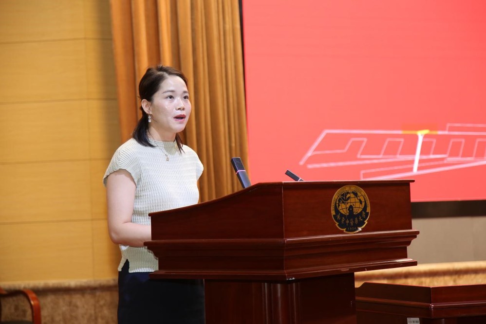 随后2024级学业指导老师代表赵彤老师、2024级研究生导师代表成小兰老师分别发言。赵彤老师通过学习经历及指导的员工参加科创比赛的感悟,鼓励同学们学会向外探索与向内思考。成小兰老师则从“善学”、“开放”、“融合”三个关键词出发,指导同学们探索求学,适应新时代与新环境指引方向。