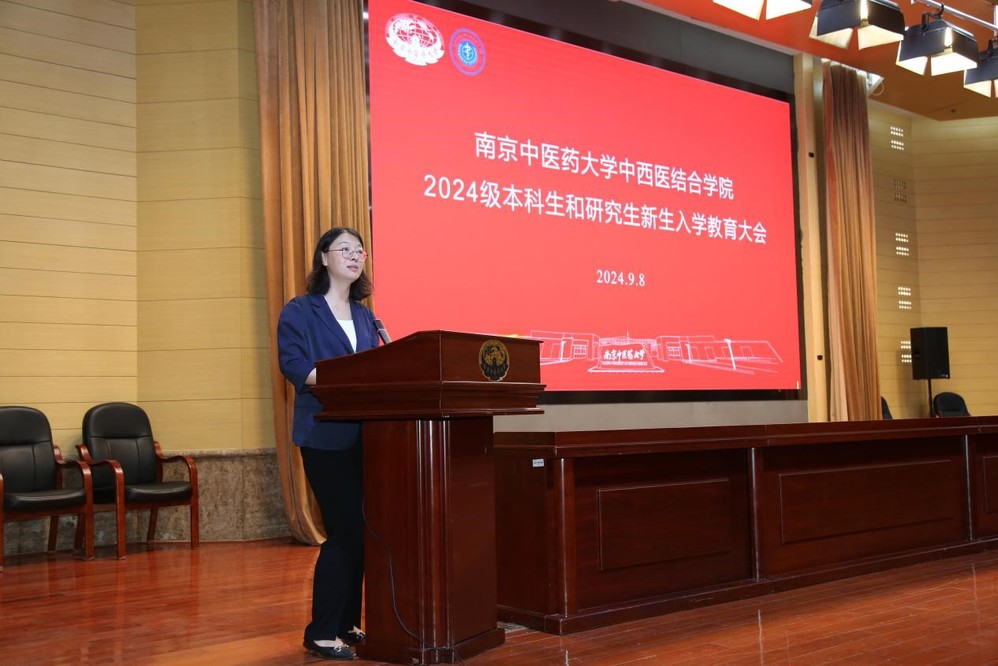 本科生代表24级中西临九年制(云翔班)的耿知画与研究生生代表24级博士徐芸竹先后发言,她们分享了自己与中医药以及南中医的缘分,充分展现了中西临学子的风采风貌,并代表全体新生表达了投身中医药传承发展与健康中国建设的远大志向。