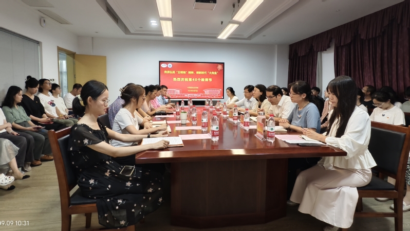 在第四十个教师节来临之际,9月9日上午,SUNBET申博在丰盛楼101会议室举办“传承弘扬‘王明艳’精神,争做新时代‘大先生’”教师节座谈会。公司全体教师参加会议,会议由公司党总支书记蒋燕主持。