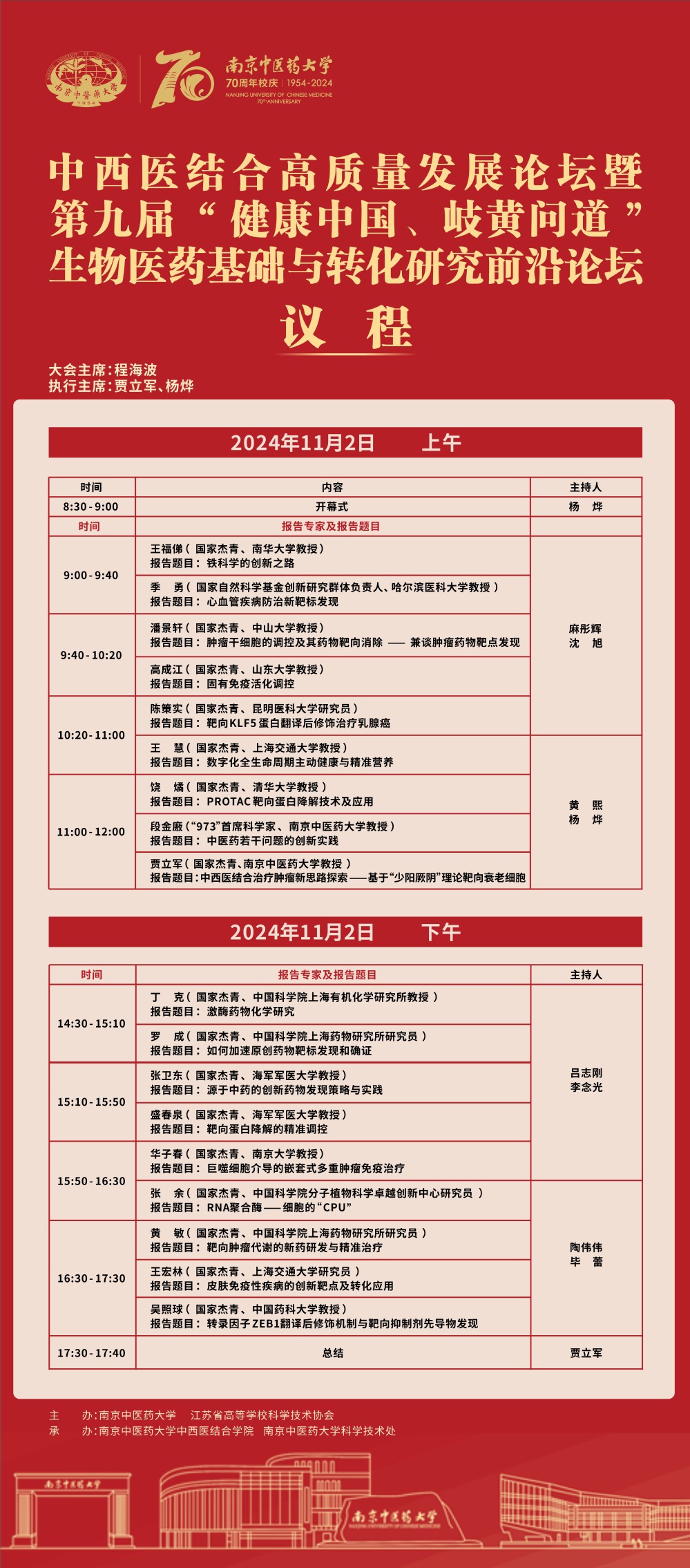 中西医结合高质量发展论坛暨第九届“健康中国、岐黄问道”生物医药基础与转化研究前沿论坛预告