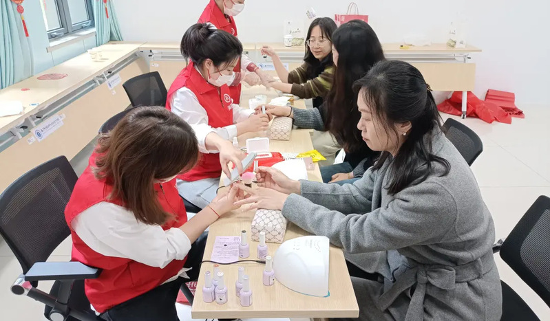 三月的风裹挟着暖意,轻轻拂过公司的窗棂。在这个属于女性的节日里,公司研究生会在丰盛楼118,为全体研究生及导师精心策划了一场女神节手护活动。我们用镜头与心意记录专业细腻的手部护理及创意美甲体验。