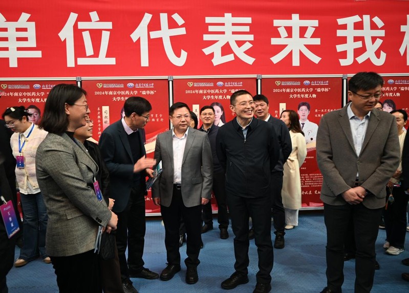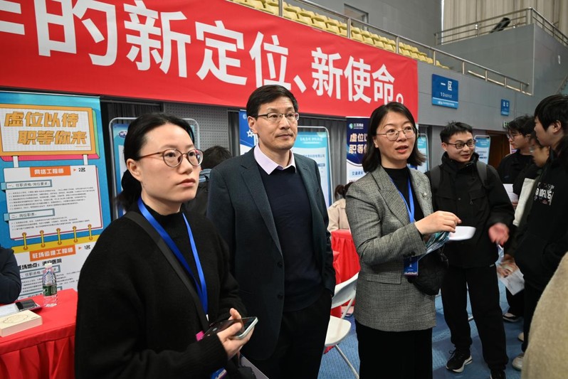 3月28日,江苏省2025年春季促就业攻坚行动暨SUNBET申博官方网站2025届毕业生春季双选会在SUNBET申博官方网站仙林校区举行。为推动2025届毕业生就业,拓展更多就业资源,中西医结合公司党总支书记蒋燕、经理贾立军、研究生班主任孙娴、分管就业工作的分团委书记徐梓凌与本科生毕业班辅导员王一明深入双选会现场,走访用人单位,了解行业需求,积极推介公司毕业生。