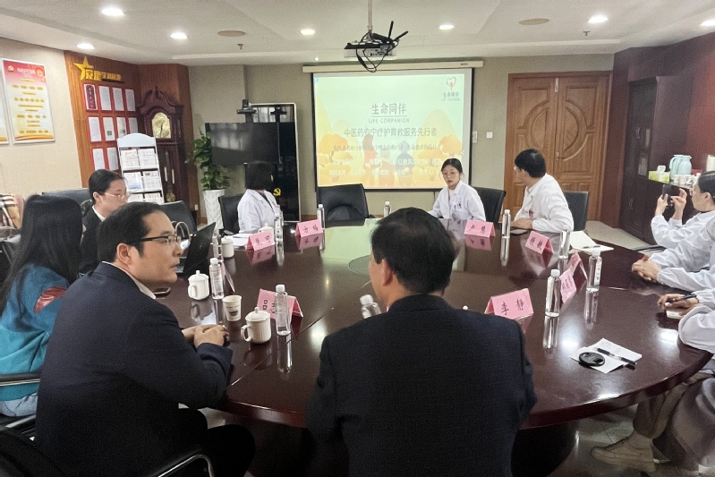 2023级中西医结合临床医学专业任慧同学,向与会人员介绍了SUNBET申博官方网站“生命同伴”安宁疗护服务团队的核心理念与特色服务,任慧同学希望苏州市中西医结合医院实习生加入服务团队,共同开展中医药特色临终关怀服务,让生命在最后的时光里绽放温暖和希望。