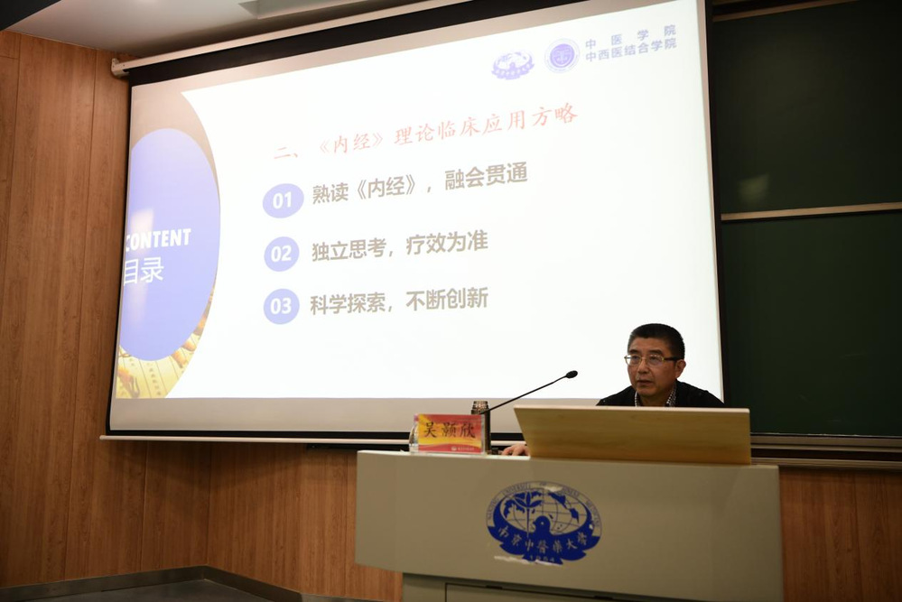 讲座伊始,吴老师从《黄帝内经》的成书背景讲起,指出其成书于公元前一世纪,是中医理论体系的重要基石。他详细阐述了《黄帝内经》理论在中医临床中的价值,强调其为中医临床发展的源泉、提高临床疗效的关键、指导合理用药的指南以及临床治疗方法发明的渊薮。