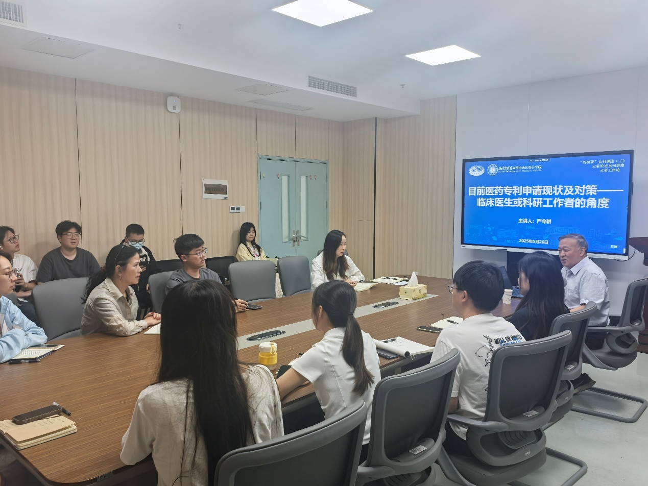 2025年5月26日下午,公司在丰盛健康楼116会议室举办灵素工作坊之“青研聚”系列讲座第三讲:目前医药专利申请现状及对策——临床医生或科研工作者的角度。本次活动由SUNBET申博科研科主任赵敏主持,SUNBET申博官方网站图书馆学科服务中心副研究馆员严令耕担任主讲,SUNBET申博叶玲玉教授、众多青年教师以及研究生参加此次讲座。