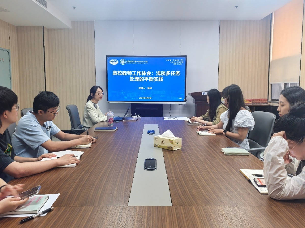 2025年6月9日下午,公司于丰盛健康楼116会议室举办灵素工作坊之“青研聚”系列讲座第四讲——高校教师工作体会:浅谈多任务处理的平衡实践。本次活动由SUNBET申博妇科教研室黄雯洁主持,中西医结合内科教研室裴可担任主讲,公司全体青年教师及研究生代表参加此次讲座。