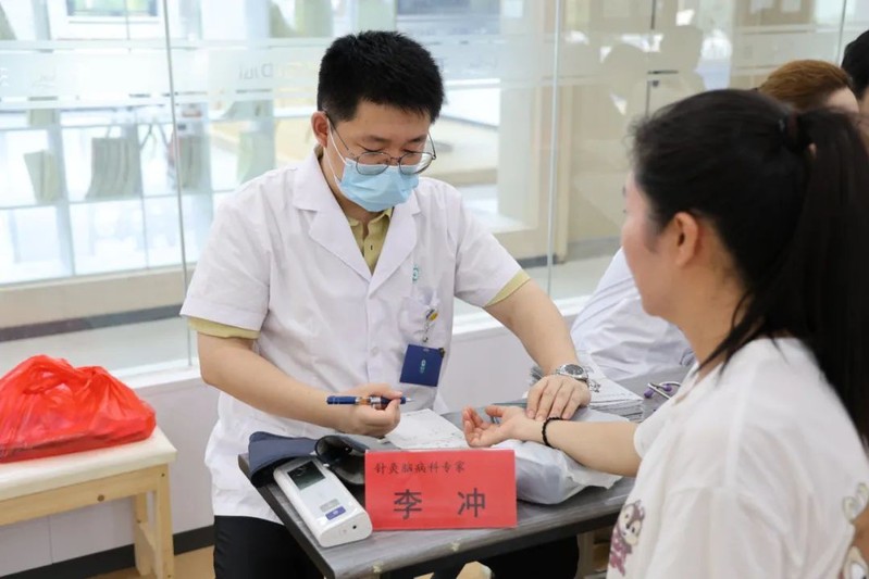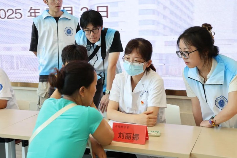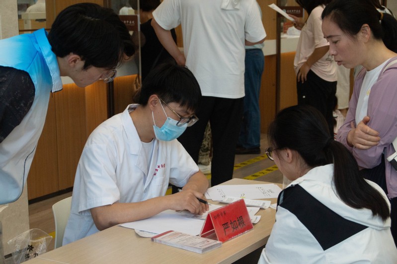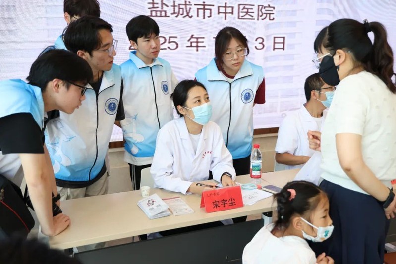 7月3日上午,员工实践团志愿者与王明艳第一、二党支部教师前往盐城市中医院开展系列活动。临床学系刘丽娜教授、裴可博士、严如根博士、韩智涛博士、宋宇尘博士等五位教师与盐城中医院肝病科主任王大光、肺病科副主任蔡元培及脑病科副主任王飞在医院门诊大厅开展义诊活动,为患者提供基础诊疗、健康咨询,开展刮痧、耳穴埋籽、拔火龙罐中医特色疗法体验。此次义诊既让患者享受到优质免费的医疗服务,也为员工搭建了“学中做、做中学”的实践课堂,让中医传统技艺在服务百姓健康中焕发新活力。