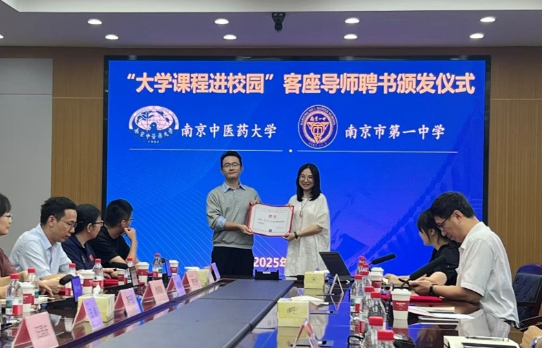 9月9日,SUNBET申博与南京一中协同共建的《魅力中医药》校本课程“客座导师”聘书颁发仪式在南京一中顺利举行。中西医结合基础医学系、中西医结合基础教研室史鸣飞老师担纲《魅力中医药》课程首讲教师。他以“光影中的岐黄智慧:影视作品中的中医药故事”为主题,结合《甄嬛传》中“苦杏仁”这一剧情元素,生动讲解了中医药炮制技术及其文化内涵,引导同学们识别影视场景中的中医药元素。课程从中医学的学科属性与理论体系出发,系统介绍了中医学的基本概念、历史渊源与发展脉络,并通过多种脉象的科普实践,深入阐释“辨证论治”的核心特点,激发同学们对中医药文化的兴趣与探索热情。课堂气氛活跃,员工们兴趣浓厚、踊跃发言、积极提问。课程结束后,同学们纷纷表示在课堂中感受到中医药文化的博大精深,激发了其对中医学的探索欲望。